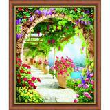 Алмазная вышивка «Аллея с розами и виноградом у моря» 21x25 см