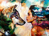 Алмазная вышивка «Дух волчицы и девушки на одной картине» 40x50 см